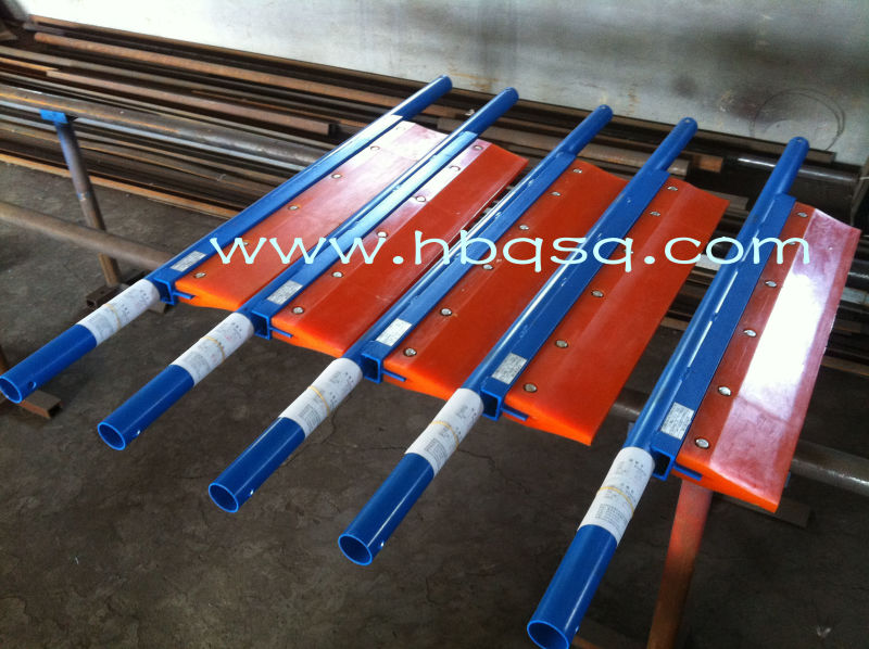 聚氨酯清掃器即刮料板,主要用于清掃皮帶正反面的粘料、雜物。清掃器在輸送機上有著(zhù)不可忽視的作用,煤礦、電力、鋼鐵、石化等企業(yè)的生產(chǎn)輸送設備都依靠它來(lái)清掃。適合大多數帶式輸送機匹配使用,其清掃器刮板是由進(jìn)口聚氨酯高分子材料橫壓成行。